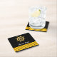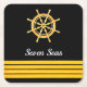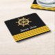 Black yacht boat name gold steering wheel stripes square paper coaster