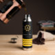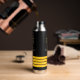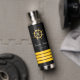 Black yacht boat name gold steering wheel stripes water bottle