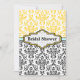 Black yellow aqua damask wedding bridal shower invitation