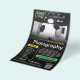 Black marketing flyer for a professional photographer personalised with your photos, logos, contact information, custom text, and QR code. Add your work to this promo flyer for a professional photography business with bright yellow and mint green as accent colours. Add your specialities and offers and current discount promo. On the back, display a sample of your work in a clean photo collage beneath your logo. Professional promotional flyer for your photography business. Vertical photography marketing flyer in black, yellow, and mint for an eye catching look.