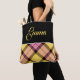 Black Yellow Pink Plaid Tartan Personalised Name Tote Bag