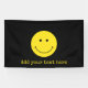 This banner features a yellow and black grinning face on a black background. Personalise the text at the bottom with your own message. Don't forget to smile!