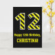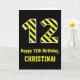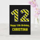 Black & Yellow Striped "12"; 12th Birthday + Name Card