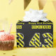 This bold, attention-grabbing, birthday-themed wrapping paper design features a large number "43" with a black and yellow striped pattern, along with the message "Happy 43rd Birthday,", and a customisable name. The background is coloured black. Wrapping paper like this might be used when wrapping gifts being given to somebody in celebration of their 43rd birthday. [~Z0000381]