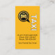 Overleaf in a yellow taxi cover, a gold taxi logo (that is made into a speech bubble) you can use is at the top. Beside it is a caption "TAXI" which is held vertically. This is followed by the contact details and another caption at the base of the card ; You can change both the captions to suit your own service needs.