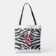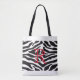Black Zebra Pattern over Any Colour with Monogram Tote Bag