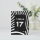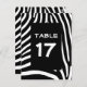 Zebra stripes pattern in black and white with room for a table number. You can customise and erase the word "Table" and centre the number.