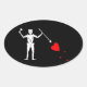 In these modern times, pirates sail the seven interstates in our wheeled land crafts. It matters not if ye be driving a Pinto or a Mustang, you’re a pirate at heart. Show the person riding your bumper that he, or she, better back off because they’re dealing with a pirate! This Edward Teach aka Blackbeard pirate flag design on a 4.5 inch by 2.7 inch oval sticker will strike fear in the hearts of those who dare get in your way. These oval stickers are also good for laptops, notebooks, the door to your basement so your Mum won't bust in while you're playing with your action figures, or any other smooth dry surface. Please drive and play with your action figures responsibly.