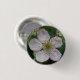 This pretty floral button features a photograph of a white blackberry flower. The photo was taken using macro photography for a detailed result. You can see the fine detail like the pink tinge on the white petals.