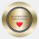 Elegant gold and black kitchen canning label stickers- Metallic gold look with gold glitter star smudges border. In the centre is a darker gold metal look circle which reads 'Blackberry Preserves' in black, modern letters, which may be changed to custom food name or any text you wish. Adorned at bottom with cute, red puffy look heart. Note: All images are printed. Not actual glitter, metal or foil. Elegant stickers for holiday bake sales or homemade Christmas food gifts. Click Customise option to change text colours, size, and font styles.