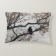 A tree has a blackbird in it and it looks pretty on a pillow.