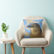 Add the intense stare of concentration to your home with this throw pillow featuring a female blackbird gazing into the distance. This nature photo captures her beautiful yellow eye and her brown feathers that stand out against the light blue water in the background. The back of this pillow features a matching blue solid colour.