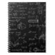 Blackboard inscribed with scientific formulas and notebook