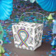 The guardian angel art party favour box features the painting of a blue, marigold and purple awareness ribbon angel. The colour for bladder cancer is yellow or marigold, blue, and purple. Yellow was the initial awareness ribbon colour. The new multi-coloured ribbon was established by the American Bladder Cancer Society.