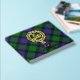 Clan Blair crest badge surrounded by a strap and buckle over tartan background. Custom front, back and spine text.