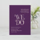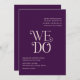 Modern wedding invitation featuring a minimal layout with "We Do" in bold typography in the middle. All design elements are in plum purple and ivory and may be changed in the design editing tool. This simple yet elegant wedding invitation is great for an informal or formal wedding.