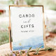This cards and gifts sign template features a a sky blue watercolor dip and elegant golden flakes. Easily edit *most* wording to match your event.