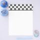 These two sided blank stationery sheets can be customized with your own text. Create programs, menus, signs and more. The top of the sheet has a black and white checkerboard border with painted black squares alternated with plain white squares.