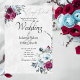 Blank Burgundy and blue watercolor floral wedding Invitation