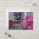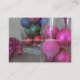 A pretty and festive blank Christmas gift certificate to be filled out by you for friends, family or employers, featuring elegant pink and colourful Christmas ball ornaments in glass vases.