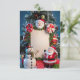 This Christmas invitation card is a delightful call to a festive celebration, featuring a top wreath adorned with baubles and snowflakes, a central space for event details, flanked by a cheerful snowman and Santa Claus, all set against a snowy, blue-gradient backdrop. Perfect for spreading holiday cheer!