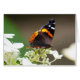 A blank greeting card with photograph of a Red Admiral Butterfly drinking nectar from a flowering bush.