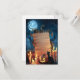 Halloween invitation card exudes a festive and spooky charm, perfect for setting the tone for a Halloween celebration. The central blank space awaits your personalised event details, flanked by glowing carved pumpkins, warm candlelight, and scattered autumn leaves. Overhead, a string of twinkling lights and fluttering bats add to the eerie yet inviting atmosphere. The dark night sky background completes the Halloween theme, making this card an ideal choice for inviting guests to a memorable Halloween party.