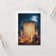 Halloween invitation card exudes a festive and spooky charm, perfect for setting the tone for a Halloween celebration. The central blank space awaits your personalised event details, flanked by glowing carved pumpkins, warm candlelight, and scattered autumn leaves. Overhead, a string of twinkling lights and fluttering bats add to the eerie yet inviting atmosphere. The dark night sky background completes the Halloween theme, making this card an ideal choice for inviting guests to a memorable Halloween party.