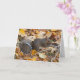 A blank greeting card featuring a photograph of a gray squirrel munching on a seed he found among the fallen leaves in Autumn.