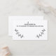 This place card features black hand drawn rustic laurels with word 'welcome' in modern script font style on kraft paper card.
