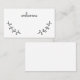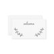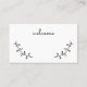 This place card features black hand drawn rustic laurels with word 'welcome' in modern script font style on plain white card.