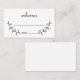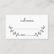 This place card features black hand drawn rustic laurels with word 'welcome' in modern script font style on plain white card.