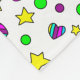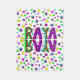 Whimsical purple, lime green, pink, blue stars and hearts Raya fleece blanket.