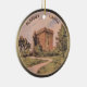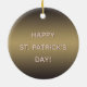 Round ceramic ornament with a vintage artist’s rendering of Blarney Castle, a medieval fortress in Cork, Ireland, that draws visitors each year who wish to kiss the famous Blarney Stone. According to Irish folklore, anyone who kisses the stone receives the ability to speak with eloquence, or “The Gift of the Gab.” Although the McCarthy Clan constructed Blarney Castle, different families possessed it over the centuries. The current Blarney Castle is the third castle constructed on this site. Back is ombre green and brown with optional text. See the entire St. Patrick’s Day Ornament collection in the PARTY FAVORS section.
