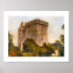 Vintage photo lithograph of Blarney Castle in County Cork, Ireland from 1895 pictures a mediaeval stronghold on a hill surrounded by trees. Digitally cleaned, enhanced and artistically rendered to resemble pen and ink with watercolors. Blarney Castle is located near Cork and the River Martin.