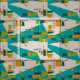 Mid-century modern rectangles pattern in orange, gold and teal on a beige background with black swirls and lines. The perfect fabric for your 50's mid-century decor.