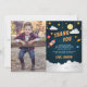 Cute flat thank you cards for your little space explorer's birthday feature a rocket ship, stars, planets and clouds against a night sky background, with "thank you" and your personal message and signature. Personalise with a favourite photo of the birthday boy for a cool personal touch.