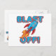 Blast Off Rocket Ship Postcard