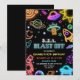 Blast Off Space Birthday Neon Outer Space Kids Invitation