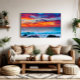 The sky bursts with fiery colours above a calm sea, each wave mirroring the sunset’s intensity. A mesmerising scene that blends peace and passion in perfect harmony.