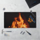 It's a blazing hot desk mat with vibrant flames burning orange against a black background. Not your typical desk accessory; it's truly unique like you. The photographic image of fire burning up the workspace mat is very realistic. Have fun and Personalise with Initials, Monogram, Name or your own text.