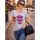 Blazing Hot Vibes Women’s Basic V-Neck T-Shirt by Freefit – Neon Lips Slogan Tee for USA Casual & Fitness Style