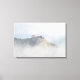 Canvas landscape print of historic Bled castle, built upon the rocks along Lake Bled, surrounded by clouds and ground fog, like it is a castle built in the sky, in Bled, Slovenia.
