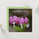 This engagement invitation features bleeding heart blossoms on the front and customisable details on the back