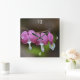 This wall clock features bleeding heart blossoms.