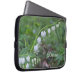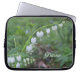 Photograph of delicate white bleeding heart flowers with a softened greenery background. Personalize this laptop sleeve with your name, makes a perfect gift for any nature lover.