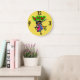 Wall Clock, 25.4 cm Round Black Wooden Frame