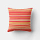 Throw pillow in blended stripes in shades of pastel to deep coral orange, accented with coral red and soft golden yellow