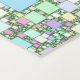 One side of this yoga mat features a splash of colour featuring a geometric multicolored pastel mini box design. Click customise to add text in a typeface style, colour, and size you like.