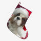 This is a Christmas Stocking featuring an original photograph of a handsome, Blenheim Cavalier King Charles Spaniel wearing his Santa hat.